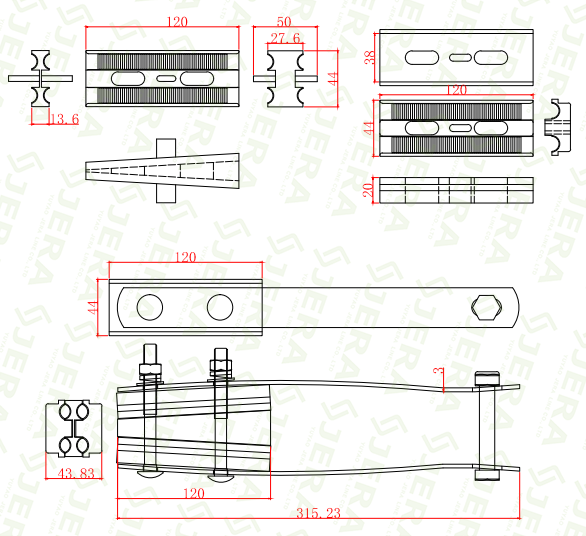 The low voltage overhead line anchor clamp PA-495 is produced by Jera Line --a Direct factory location in China, Manufactured from corrosion-resistant, UV-stabilized materials, this 4-core anchor clamp ensures long-term mechanical strength even in harsh outdoor environments. Its compact design and self-tightening wedge system provide stable cable retention without damaging the insulation. It consists of following main parts: