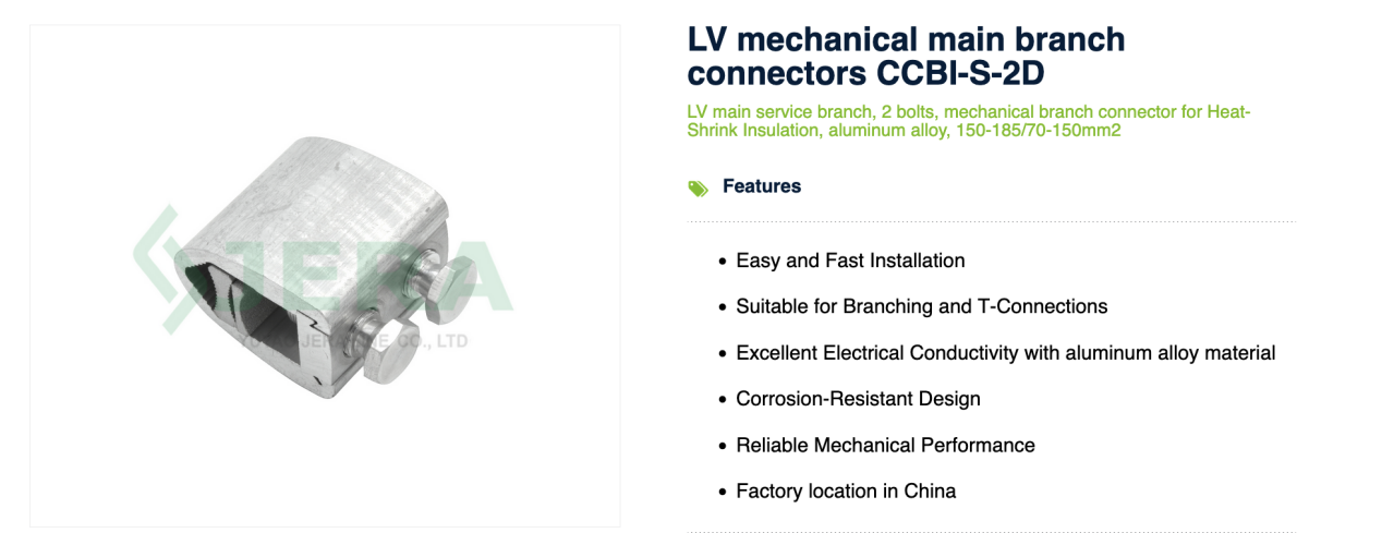 The UB1/3 connector remains a trusted and widely used solution in LV distribution networks. However, several high‑quality equivalents exist, and Jera Line’s CCBI‑S‑2D LV Main Branch Mechanical connector stands out as a robust, well‑tested, and cost‑effective alternative. Whether you are a utility, contractor, or distributor, choosing the right main‑to‑branch mechanical connector contributes to safer networks, easier installations, and long‑term operational performance.