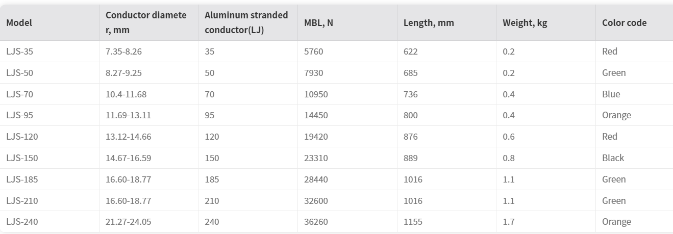 Among them, the ACSR preformed strain clamp LJS-95 is a typical model that is fully compatible with ACSR NL-95/LJ conductors and can serve as a direct equivalent or alternative solution. It is designed to match the mechanical and dimensional requirements of NL-95/LJ,ensuring reliable installation performance, stable gripping strength, and long-term durability in overhead line applications.