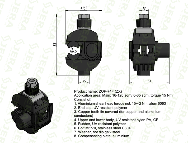 The ZOP-74F is a high-performance component designed for overhead line applications. Built with durable, high-quality polymer materials, it offers excellent insulation and environmental resistance. Its compliance with IEC 60695-2-11 material test standard, capability to perform safely even under extreme thermal conditions.