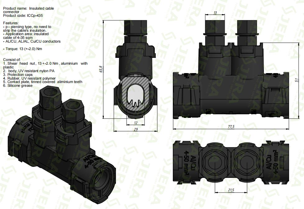 The pre-insulated cable connector is under Research and Design RnD by Jera Line, who has direct factory in China with organized production process, it consists of the following main part: