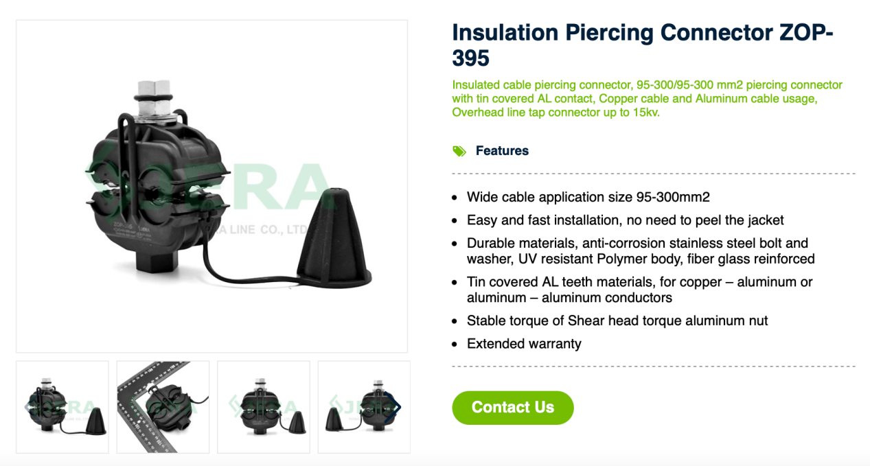 The ZOP-395 is a robust insulation piercing connector designed to handle larger cable sizes from 95-300mm2. The primary benefits of this connector include: