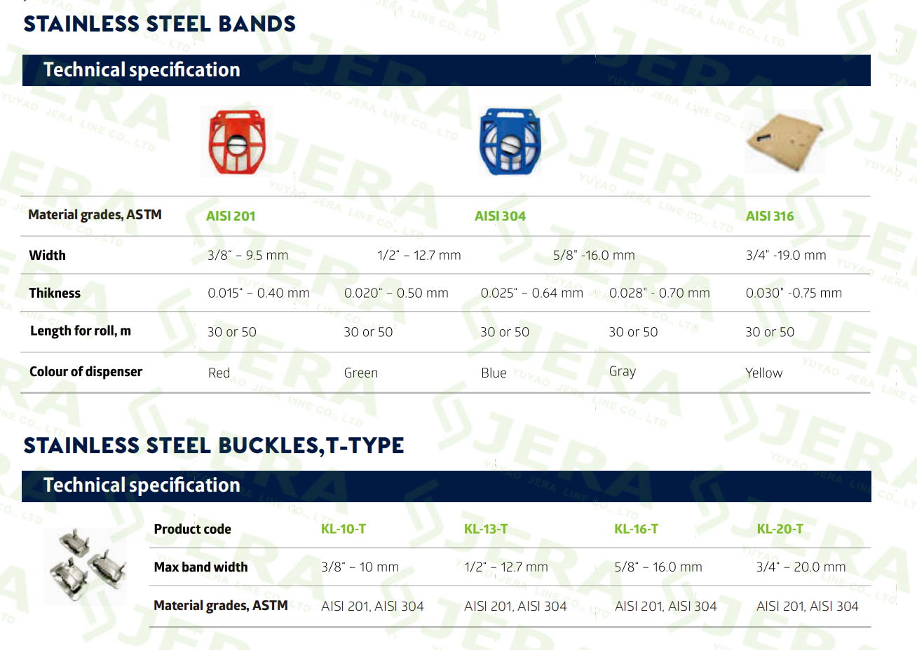 Jera Line provides durable stainless steel banding and buckles with different sizes for use in LV and MV overhead cable installations.