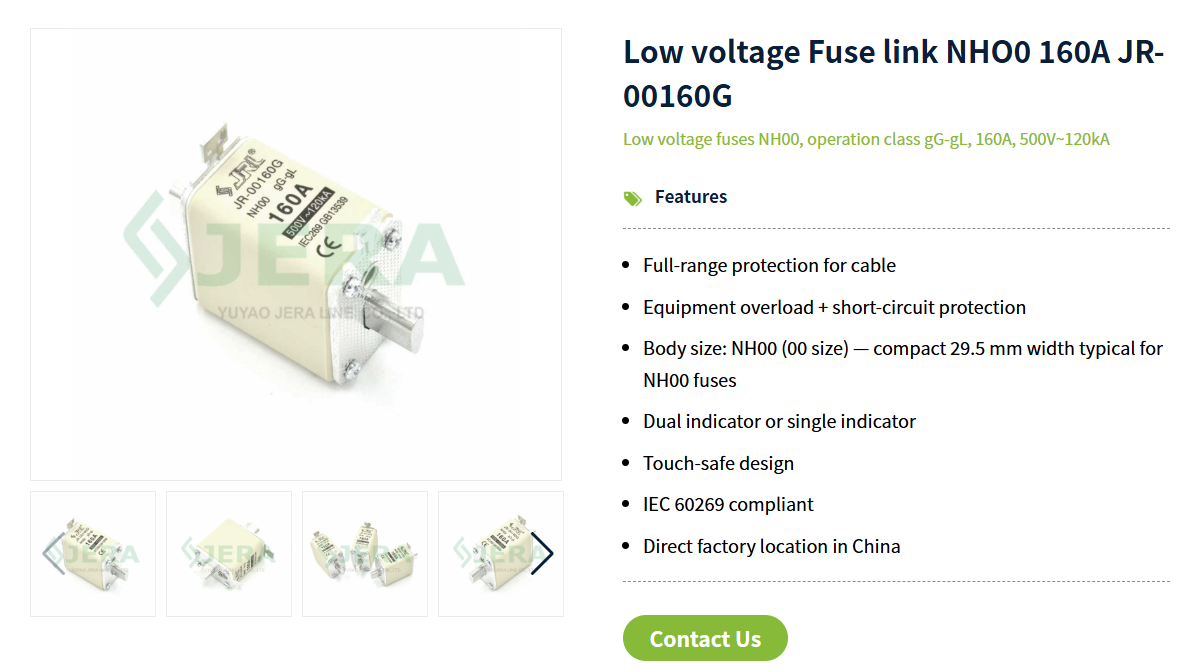 In the complex web of industrial low-voltage power distribution systems, there’s a component that often flies under the radar but plays a critical role in safeguarding equipment, preventing fires, and ensuring operational continuity—it’s the low-voltage fuse JRL NH00 Series Fuse (Model: JR-00160G), a reliable workhorse that’s earning trust in factories, power rooms, and industrial facilities worldwide.
