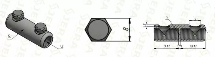 Mechanical terminal cable connector, CCB-2-10-25is produced by a direct factory location in China -- Jera Line, and it is also under Research and Design RnD by Jera Line, Shear-off-head bolts lugs and electrical cables jointing process does not require the compression tool with exact size. All required tension force is achieved by shearing off the head of bolt by hex key to tight the bolt.