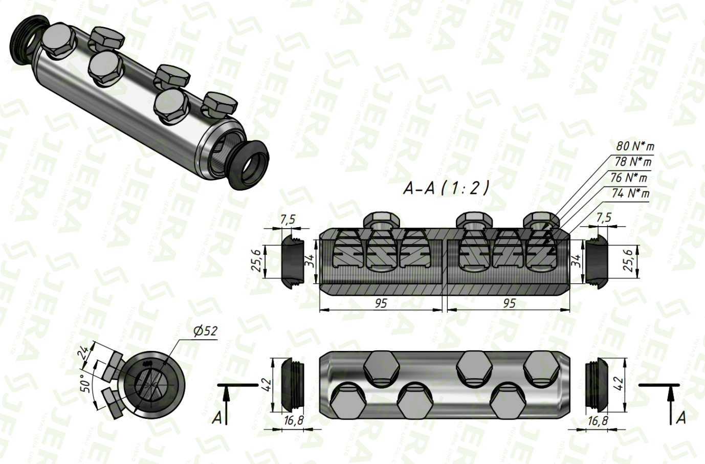 MV Electrical torque Connector CCBVzT-36-6-400-630 is manufactured by Jera Line, a direct factory location in China. It is part of their ongoing Research and Design RnD efforts to ensure high-quality, reliable performance in medium-voltage (MV) applications. Here are the main components of this MV mechanical connector: