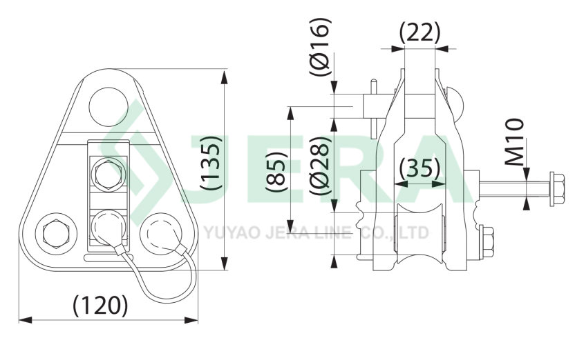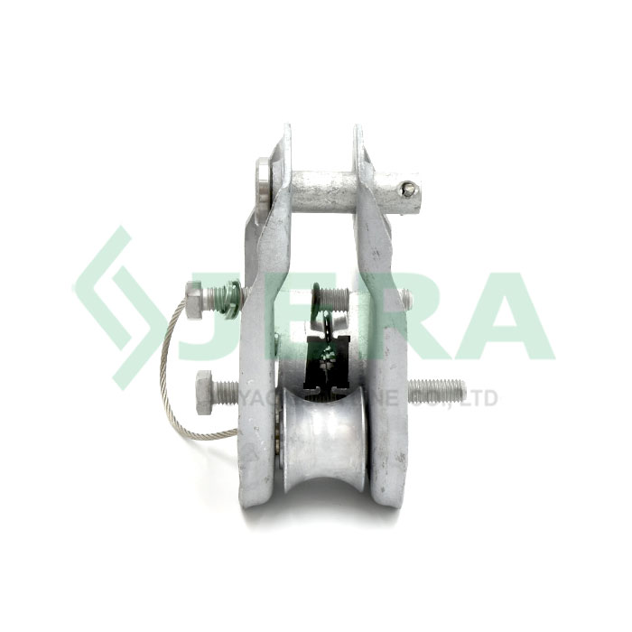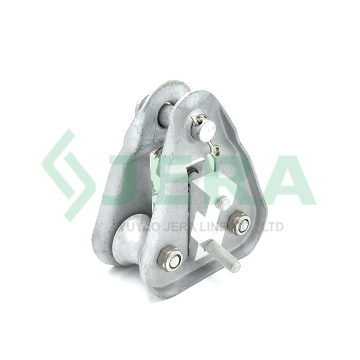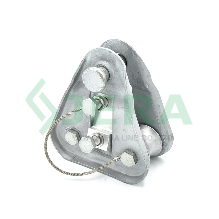 MV suspension clamp PS-181 for ABC and bare cable is producted by Jera Line --a Direct factory location in China, The clamp engineered built-in pulley function, allowing conductor installation and pulling through the clamp without needing a separate pulley, The clamp is designed so that there are no loose components, which improves safety, handling in field conditions, and reduces the chance of losing parts during installation , it consists of following main parts: