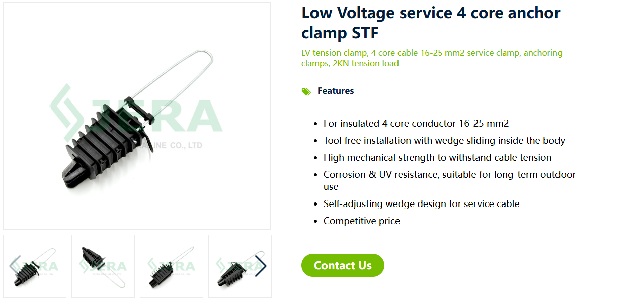Tension Clamp PA-25 is a specialized, wedge-type strain clamp engineered for the reliable termination and tensioning of low-voltage insulated aerial bundled cables (ABC), particularly 2-conductor or 4-conductor service lines. Crafted from UV-resistant, weatherproof materials like PA66 (nylon 66) with metal components (e.g., stainless steel or hot-dip galvanized bail) for durability, it combines practicality and performance.
