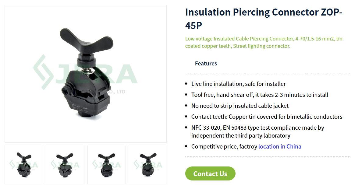 Insulation piercing connectors comply with NFC 33020, type test report from the third party independent laboratory