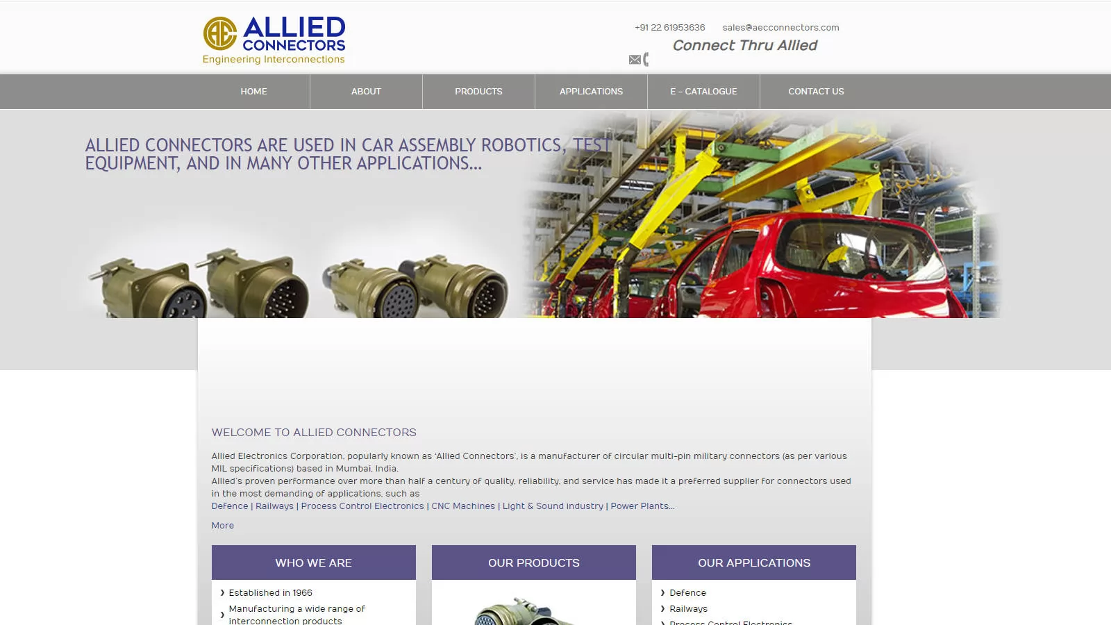 Allied Electronics Corporation, popularly known as ‘Allied Connectors’, was established in 1966 as a manufacturer of R.F. Co-Axial and PCB Edge connectors. Being India’s first manufacturer of circular multipin connectors, Allied has been a pioneer in the indigenisation of connectors used by the Indian Armed Forces, and has played an active role in the formulation of Joint Service Specification (J.S.S.) – the governing specification for connectors in India.