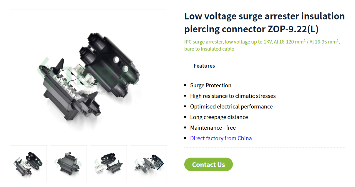 A low-voltage (LV) surge arrester IPC bare connector is a special type of insulation piercing connector (IPC) designed to connect LV distribution conductors while providing a mounting point for surge arresters. The product SL9.22 IPC bare connector with a threaded hole for surge arrester is a popular products which in the market. It featured without stripping insulation, fast installation without special tool.