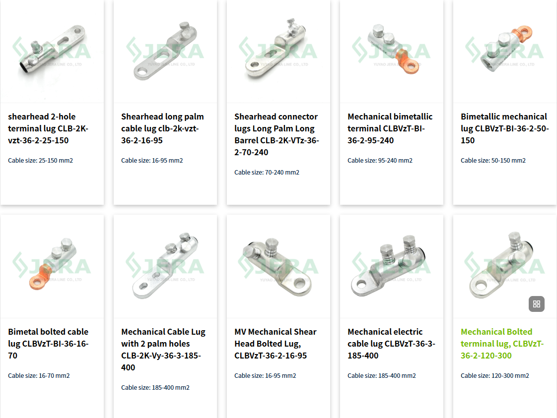 For projects where price sensitivity and local availability matter, Chinese manufacturers have become attractive alternatives. Jera Line (as an example of a Chinese supplier) offers shear-head and mechanical MV lugs designed to meet common industry specifications. Key selling points often are: